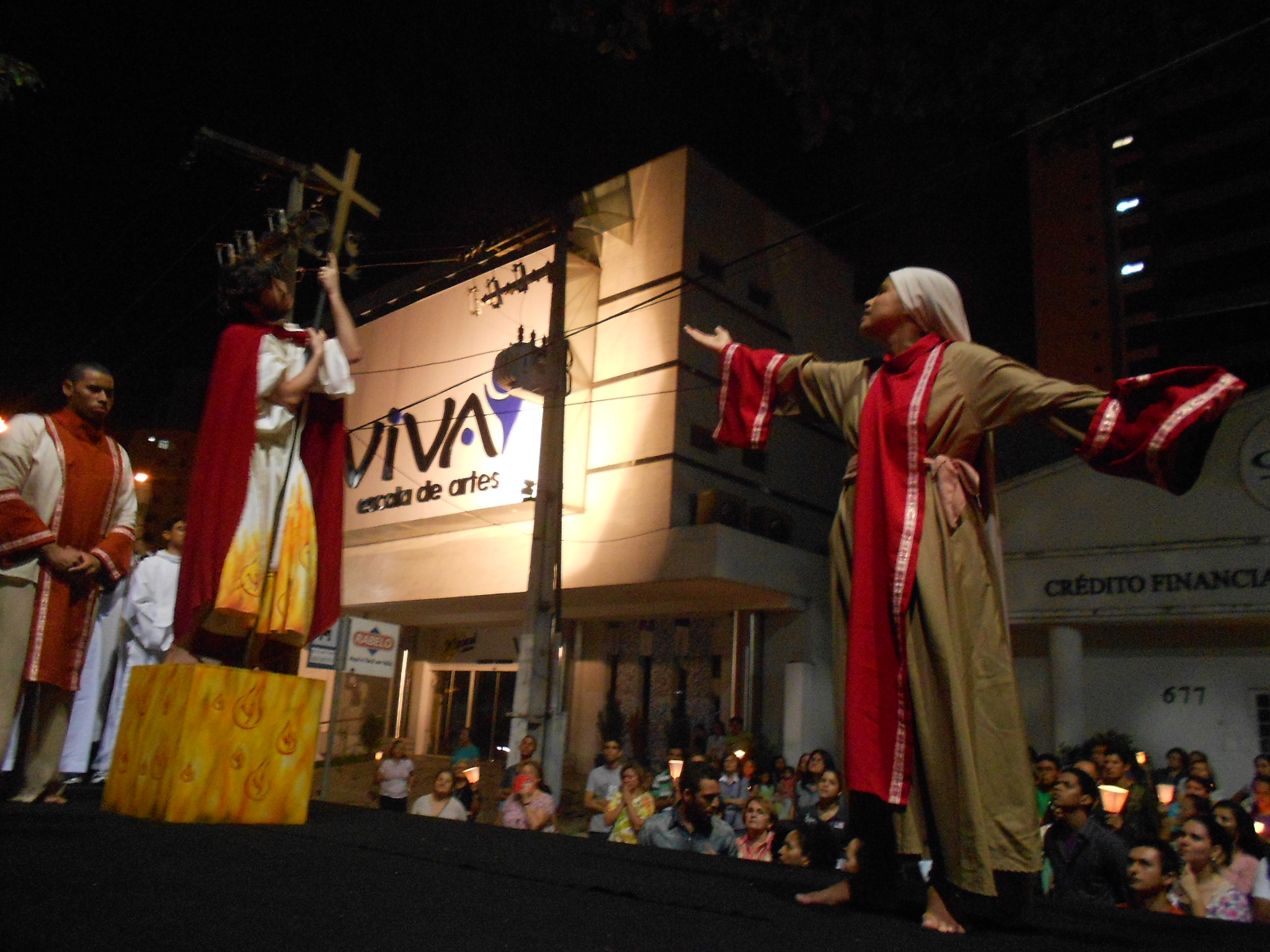 Um palco móvel, 38 atores e uma procissão com mais de 1500 pessoas percorreram as ruas Maria Tomásia, Tibúrcio Cavalcante, Av. Dom Luiz e Av. Desembargador Moreira refletindo nas 14 estações da Via Sacra que meditam a traição, condenação, prisão, paixão e morte de Cristo.